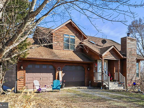 Financing fell through on the previous contract. Located at the end of a private road. Sit on the back deck this spring and enjoy listening to the birds and the amazing view. This home is situated on 2 acres and is set up for horses and even has a chicken coop! The living room is cozy with a propane fireplace and a soaring ceiling. The kitchen overlooks the backyard fields and coop. The main bedroom with ensuite has an extended storage area over the attached two-car garage. There is a hall bath for the other upstairs bedrooms. The basement is a walkout with a full bath and huge windows. Could be another bedroom or a home office. The house gets high-speed internet satellite or you can use Frontier. The run-in has an automatic waterer and has electricity. The chicken coop has electricity. Fencing is board and American wire. All the outdoor lights were new last summer. and are dusk to dawn lights, with a motion detector on the garage.