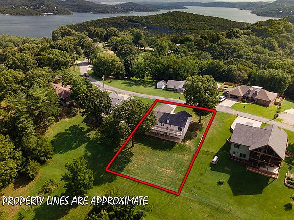 Come enjoy a gorgeous year round lake view of stunning Table Rock Lake. Photos do not do it justice! Lake is actually much closer than it appears in the photos. The main floor of this newly updated home boasts a spacious kitchen with eating bar, dining area, and large living room with vaulted ceiling and fireplace. Windows allow for beautiful light and views of the lake from both the kitchen and living room. The lake view continues in the primary suite, which is spacious with its own private bath. Main floor laundry. There are 2 additional bedrooms on this floor. (One is non-conforming without a closet) An additional full bath completes the main floor. The lower level is a walk-out basement with a spacious living room, a 4th bedroom with large walk in closet and full bathroom. There is ample unfinished storage space as well as an expansive workshop area of approximately 400 sq ft. SO MANY UPDATES: New roof & gutters 2024, Deck rebuilt in 2023, New HVAC system 2023, New appliances, kitchen countertop, & light fixtures 2024. New flooring 2023. Fresh paint on walls and trim 2024. The backyard is fully fenced, and the lower patio is wired for a hot tub. There is a community boat launch with courtesy dock just down the hill. Possible 3rd Party Slip available for extra $$.