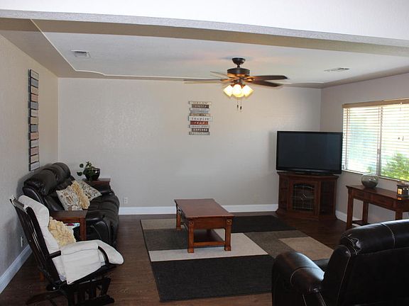 Pride of ownership shows in this spacious family home. 1960 square feet, 4 bedrooms, 2 bathrooms with RV parking. Kitchen is recently upgraded with new cabinetry and granite counters, a walk in pantry for all your storage needs and stainless steel appliances. Welcoming living area is large and open with a lovely brick fireplace and rich laminate flooring,