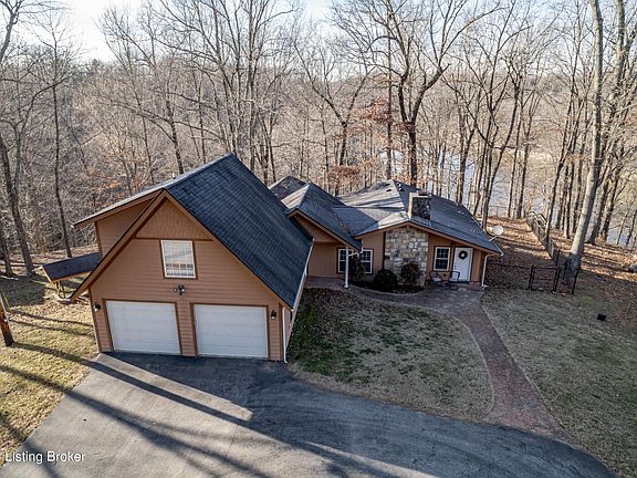 Step inside this beautiful lakefront home on Rough River Lake. Located just minutes from Leitchfield, you are close to restaurants and shopping, yet tucked away in your own vacation home on the lake.On 1.1 acres Lot 18A, this home comes completely furnished from the inside out. Enjoy evenings on the large deck with a hot tub and grill & relax by the fire pit after a full day on the lake. Store lake toys in the heated and cooled 2 car garage, or convert to living space.The backyard is fenced in and leads down the lighted pathway to the lake acess where there is a dock to transfer pending COE approval. A separate shed allows for more storage.Inside you will find an open kitchen/living room concept with beautiful hardwood floors and a stone fireplace. A formal dining room is located just off the kitchen that leads out to the deck. With 3 large bedrooms and 3 bathrooms this home would be the perfect VRBO or primary residence. This home truly is a must see from the lake views to the pine trees. Peter Cave Marina is located just 2 min away by car to load and unload boats, and just around the corner when traveling by boat. The convenience is a plus!
