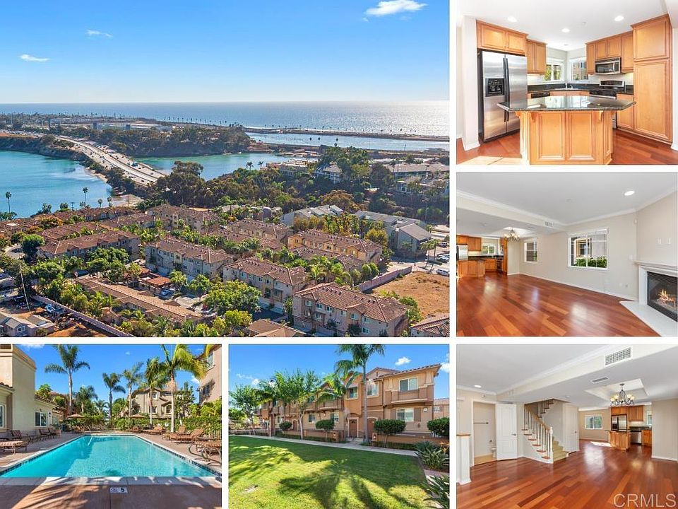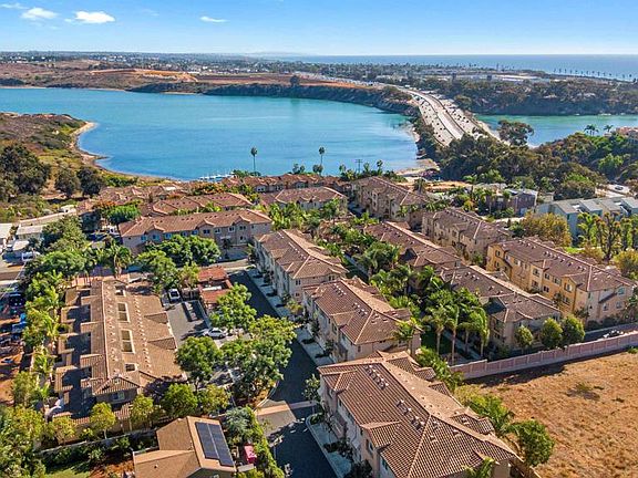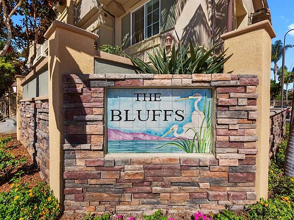 Steps to the lagoon! Gorgeous 4 bedroom end unit townhome with private courtyard in The Bluffs...walking distance to the beach, village and lagoon! Immaculate and upgraded, this tri-level townhome offers an open floorplan featuring kitchen with granite counters, stainless steel appliances and breakfast island plus bright living room with fireplace, large dining area and cozy family/ TV room. Primary bedroom with large ensuite bath plus two additional bedrooms and a bath on the third level. Lower level features additional bedroom, perfect guest room, office or at home gym, and two car garage plus laundry area. Quality upgrades throughout incl. ceiling fans, wood flooring, A/C, stone counter tops & much more! Community offers pool, spa, playground, sport court and clubhouse. No Mello Roos and low HOA! Unbeatable location near the Carlsbad Agua Hedionda lagoon and its watersport activities, Tamarack beach and Carlsbad Village with fantastic dining, shopping and more! Welcome to the San Diego North County Lifestyle!