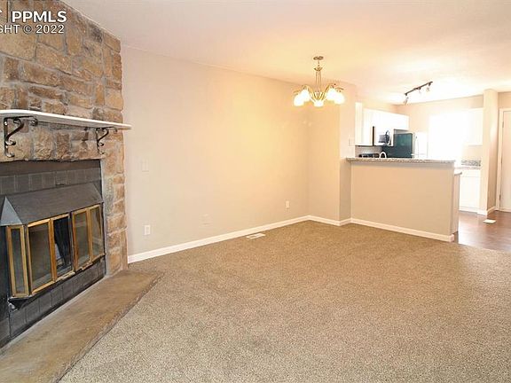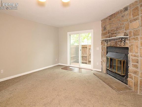 Immaculate 2 Story townhome previously updated 3 bedrooms, 2 bathrooms with 1 assigned parking. Throughout the home, there is newer carpet and new neutral paint colors. Upon entering you will see an updated kitchen and living room with a wood-burning fireplace to cozy up on chilly evenings. The kitchen features new cabinets, new granite countertops, and new stainless-steel appliances, and off of the living room is a sliding door that leads to a wood deck. Downstairs is a 3rd bedroom and gorgeous ¾ bathroom that features new custom tile, a new vanity, and a new toilet. Upstairs there are 2 bedrooms including the master which has an attached full bathroom with the same features as the other bathroom. It includes a washer and dryer. This property is centrally located and close to downtown, the airport, grocery shopping, and restaurants. Easy access to Fort Carson and Peterson installation. This property will not last and must-see! This unit is sold as is. Water usage inside the house is included in HOA. Home exterior maintenance is in order by Hoa.