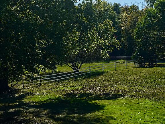 Beautiful brick cape cod in a quiet cul-de-sac. House sits on 5+ acres surrounded by woods. Large back deck has an expansive view of the backyard and pasture surrounded by woods. Underground fencing keeps dogs in the yard and out of the pasture, (3-stall) barn, and front yard. Kitchen has been updated with plenty of granite countertops, a second sink, newly finished Schrocks of Walnut Creek cabinetry, and Armstrong composite flooring. Renovated master bath has walk-in tiled shower and a double vanity with poured concrete countertops. Under 6-9 minutes to Highland schools and MCDL Highland branch. Mother-in-law apartment has a private entrance, fully renovated bath, and kitchenette. Completely renovated mudroom with dogwashing station and more refinished Schrock's cabinetry.