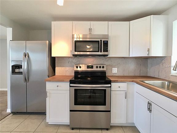 This charming, fully RENOVATED, spacious 3/2 BLOCK home is MOVE-IN ready. Live worry free as the ROOF, A/C and WATER HEATER were just replaced. Love to cook and entertain? Then open concept of Kitchen/Family room with BRAND NEW kitchen featuring light cabinets will be your favorite place to be. Butcher-block solid wood counter tops provide plenty of cooking surface. BRAND NEW stainless steel appliances, NEW laminate floors throughout, with NEW tiles in wet areas, NEW interior and exterior paint are just a few things to mention in this home transformation. Subtle colors, elegant designer kitchen, split floor plan, a separate Dining Room and a Breakfast/Reading Room and updated bathrooms make this home a desirable choice. Plenty of room to roam on the oversized fenced in backyard with enough space for a pool. The home is conveniently located near US-19, shopping, restaurants and BEACHES. Do not miss the opportunity to own this beautiful home! Hurry to schedule your showing! This home will not last long.
