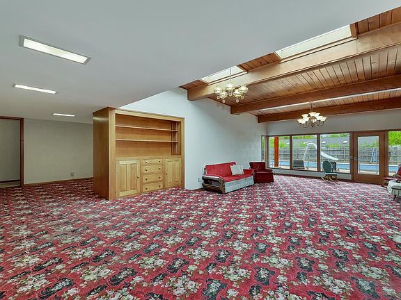 This Mid-Century Modern style ranch home was built 70 years ago in one of the cities premier neighborhoods just north of WSU and the old Crestview CC golf course. Located within easy walking distance of Brooks Magnet Middle School, today the property sits atop a collection of unique one of a kind homes of a by-gone era. There is plenty of space and room here for everyone--with cozy, welcoming special features such as 3 fireplaces, 5 generously sized bedrooms, cedar closets, and three baths. Your favorite room will be the huge 440 sq ft Great Room with sky lights & knotty pine ceiling beams; but the real eye catcher is the way the room overlooks the beautiful, well-kept 9 ft deep swimming pool (salt). There's also a fantastic 400 sq ft Rec Room that boasts a kitchenette and hidden storage cupboards. And the yard!--even with the large pool, there is plenty of green space here for play, gardening, outbuildings, or whatever you need--a few commercial grade playground equipment remain in the back corner of the secluded yard. The circle drive in front is conveniently located on a quiet street north of WSU and only 1.5 miles south of Koch Industries, this home is ready for its second family. Note - This home has proved to have special appeal to the mid-century modern enthusiast. Much of it remains in its original yet good condition, including tons of built-ins shelving and woodwork crafted out of knotty pine, etc. Must be seen to be appreciated.