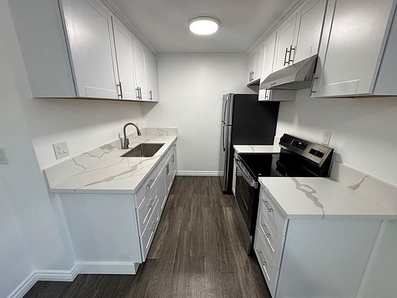 Contemporary finishes and fixturesLight-filled unitFreshly remodeled bathroomModern stainless-steel appliancesUpdated cabinetrySleek countertopsSpacious open layout