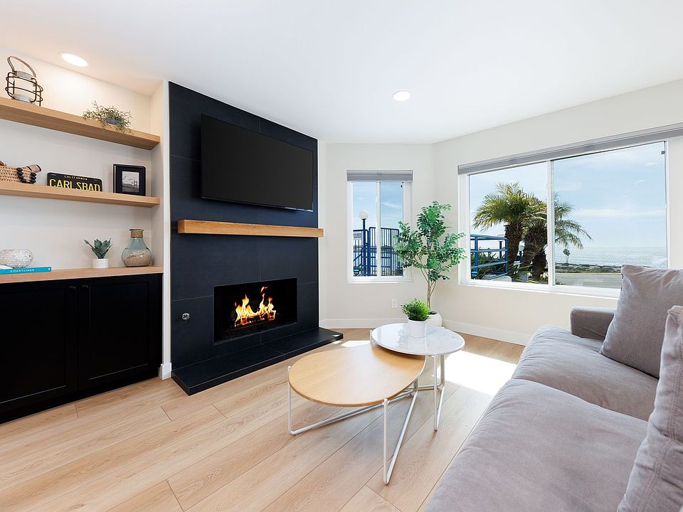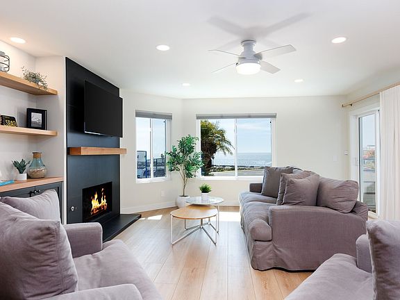 - - AVAILABLE FOR 4+ MONTH STAYS (120 Night Minimum, Per HOA)- - Welcome to your seaside sanctuary in Carlsbad! Nestled in a premier location just steps away from the sand, this 2BR/2BA condo offers an unparalleled coastal living experience. This single-level floor plan boasts stunning ocean views of the Pacific and lagoon, inviting you to unwind and soak in the beauty of the surroundings. With a corner location on a quiet street, enjoy the stunning ocean views and added privacy and tranquility. Convenience is key with secured, gated parking, providing two dedicated spots, ensuring hassle-free arrivals. Elevator access brings you right to the doorstep, making entry a breeze. Inside, every square inch has been beautifully renovated and decorated in local coastal style, and the open floor plan seamlessly integrates the kitchen and living spaces. High ceilings and large windows flood the space with natural light, creating an airy ambiance throughout. Cozy up by the fireplace in both the family room and master bedroom, adding warmth and charm to your stay. Ample storage areas, and ALL NEW appliances, including a full-size washer and dryer within the unit, ensure convenience and functionality. Retreat to the generously sized bedrooms and luxurious bath areas for relaxation and rejuvenation after a day of coastal adventures. Step outside to your private view deck and savor the sights and sounds of the ocean waves crashing nearby. For added enjoyment, take advantage of the community's private pool and spa area. Access to the beach is effortless via the footpath across the street, allowing you to indulge in endless seaside fun. Explore the vibrant neighborhood with ease, as restaurants, beach trails, fishing spots, shopping destinations, and more are within easy walking or biking distance. Whether you're seeking adventure or relaxation, this Carlsbad condo offers the perfect coastal retreat for your next getaway. Book now and start making unforgettable memories by the beach! Rates vary based on the season and length of stay - please inquire with your desired dates - we look forward to assisting you!