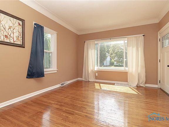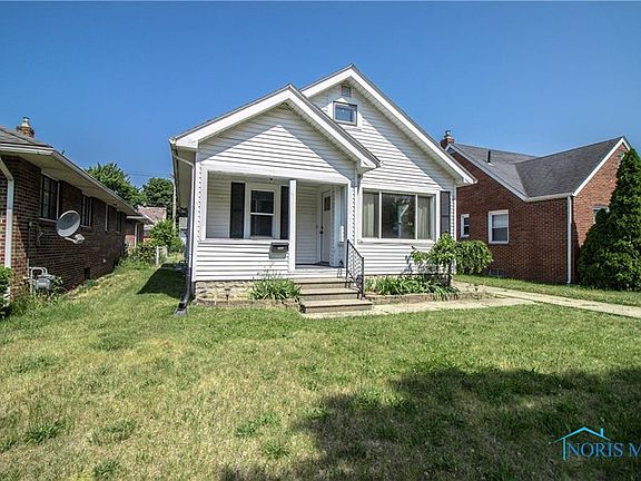 Cute as a button! This 2 bedroom, 1 bathroom West Toledo bungalow boasts spacious living and dining rooms, both freshly painted, new baseboards and hardwood floors sanded and sealed w/ an oil-based polyurethane. Kitchen facelift includes painted cabinets and walls, new flooring and new hardware. New bathroom shower head and faucets. Second bedroom has access door to unfinished dormer for storage or can be finished adding additional living space! Basement storage and laundry. Newer HoneyWell wi-fi connected thermostat. Fenced in back yard with a one-car garage.