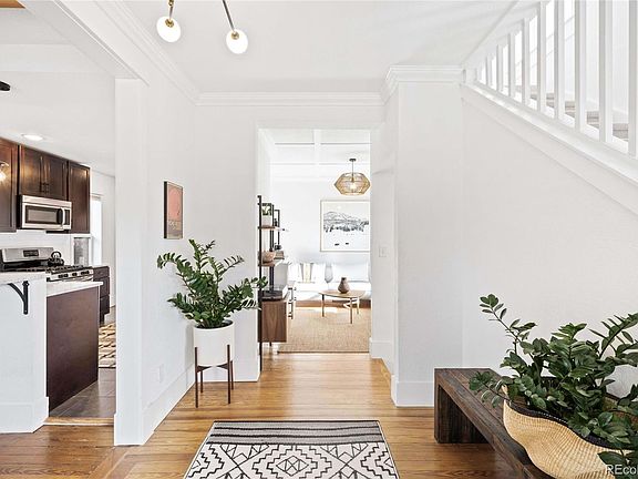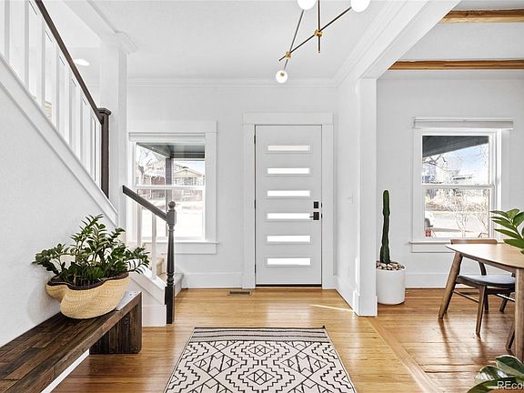 Perfectly situated near Highland Square and Tennyson shops and restaurants, this Berkeley home is infused with timeless charm. A covered front porch draws residents inward to a bright and airy layout cascading with handsome hardwood flooring. Natural light streams in through large windows with custom coverings. Exposed brick accent walls add classic warmth to the living and dining rooms. The home chef is treated to a sleek kitchen showcasing granite countertops and stainless steel appliances including a gas range. The sizable bedrooms share two baths with modern tiles and fixtures. Downstairs, a finished lower level offers a secondary living area and space for a home office. Escape outdoors to your own oasis in the city. The private, professionally landscaped backyard boasts a paver patio and a built-in stone gas fire pit. Upgrades include central A/C. A 1-car detached garage and additional off-street parking spaces afford plenty of room for vehicles. Residents enjoy proximity to Rocky Mountain Lake Park and Berkeley Lake. The location is ideal for exploring the best of NW Denver restaurants, coffee shops, boutique shops and parks, and offers easy access to I25 and I70 for an easy commute downtown or to mountain getaways.
