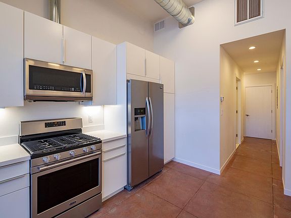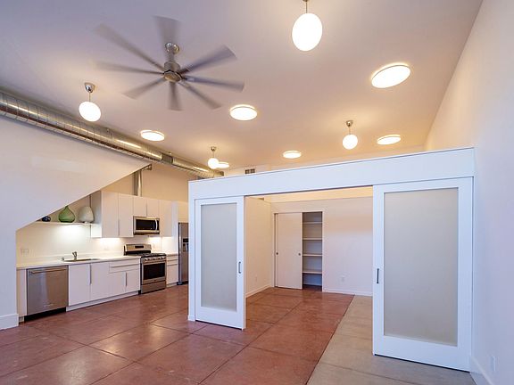 Store-front live-work loft around the corner from MacArthur BART. Open Sat May 30 from 11-12 NOON. 11'10" high ceilings, sealed concrete floors. New tiled bathroom, new kitchen with stainless steel gas stove, refridgerator, dishwasher and microwave. Washer and dryer in the unit. New heating system and high-tech ceiling fan. Large front room, middle flex room with partition walls, sliding glass doors and closet, and a large beck room with closet. Street parking only. Tenant pays for water, gas and electric. Owner pays for garbage and recycling. Good credit required. One year lease then month to month.