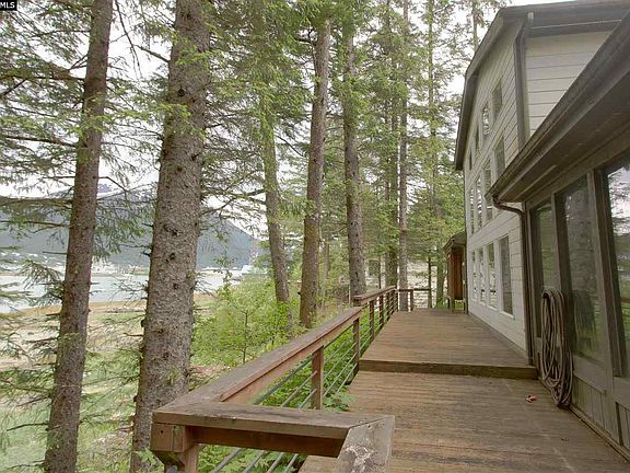 Waterfront Property! This home is open and airy with vaulted ceilings in the living room that soar two stories and a wall of windows that look right out over the Gastineau Channel. Doors open from the dining room, living room and master bedroom on to the deck for entertaining, dining or just a relaxing way to enjoy the views. The kitchen has beautiful oak cabinets with pull out drawers and Corian counter tops. This house has many bonuses. The master suite on the main level has an adjoining over sized master bath that is completely handicap accessible with tiled shower and a walk in closet. On the upper level, there is a balcony area, two bedrooms and a third bathroom. Off of the large foyer, you will find an attached three car garage. Additional features include a standby generator and a newer pellet stove for an additional heat source. Located just one mile from the center of Downtown Juneau!
