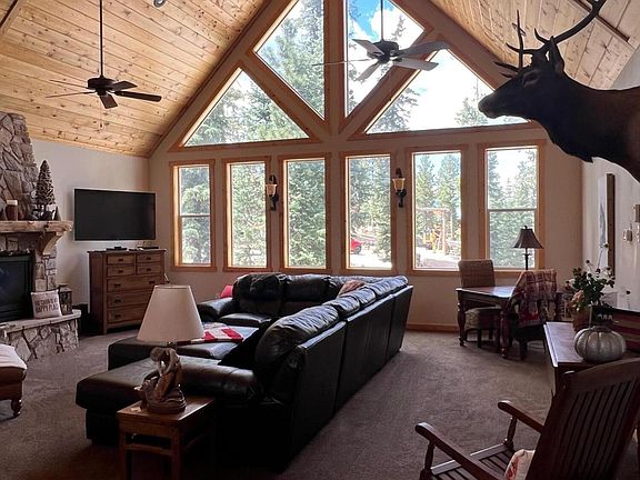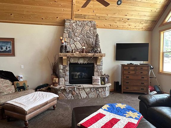 Located on a very quiet cul-de-sac Rd. This .5 ac lot backs to National Service so that the forest is truly your amazing backyard. The cabin has approx. 2450 sq ft of living space as well as approx. 563 sf of attached garage. Step upstairs to an absolutely stunning Living area with amazing windows throughout. A large stone fireplace is very welcoming. The kitchen features custom cabinetry, lighting and granite countertops throughout the home. Upstairs MB is large with a full bath and double sinks. A small, covered deck is just off the kitchen where you have a bar-b-que area. Downstairs you will find the 2nd Bunker rm that sleeps 6.On this floor there is also a 3/4 bath, 1/2 bath,laundry rm, mudroom and very nice entryway. A great firepit area in front to enjoy those beautiful nights