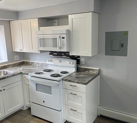 Great 3 bedroom Unit, All new remodel with laminate floors through out and all new appliances. Bathroom is new remodel and has all new fixtures and stone vanity top. It is the lower unit of a 4 plex. Laundry in the unit. 3 large bedrooms and lots of closet space. Located on cul-de-sac with private parking in the back and on street parking in the front. 1 small dog is allowed with pet deposit and monthly pet fee. Utilities are a flat fee of $125.00 a month Property manager is Kenney and Company and managed by Dave Duncan Call or text Dave for showing, Application is available on line at "Kenney and Company. Com" (No Spaces) 1 year lease 1 small dog is allowed with pet deposit and monthly pet fee. Utilities are a flat fee of $125.00 a month for Gas, Water and Trash. Electric will be in tenants name and paid by tenant. Property manager is Kenney and Company and managed by Dave Duncan - his phone number is listed on this ad. Call or text Dave for showing, Application is available on line at "Kenney and Company. Com" (No Spaces) $36.00 fee for application