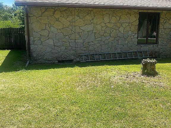 - Exterior features: Stone, Wood