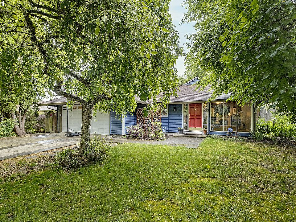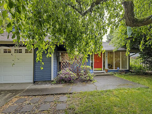 This cozy home has large windows providing natural light and bamboo flooring throughout. Spacious kitchen with butcher block counters, hood range, stainless, updated lighting, frig stays! Surround sound ready for music ambience or movie night. Updated bath with tile shower. Deep two car garage with newer doors/rails/opener plus above garage storage. New deck for entertaining, and the master has a slider ready for its own private space too. Trampoline can stay if desired. W/D excluded.