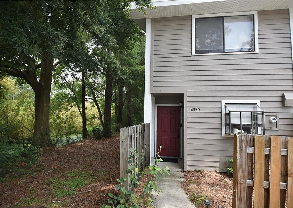 Welcome Home to Mill Run! This 2 bedroom 1 and a half bath is the perfect spot. The first floor has a nice flow from the kitchen to the dining area to the living room. Off of the living room you will find a screened in porch with laundry room (washer and dryer included) and a fenced in backyard. Upstairs there are 2 bedrooms and the full bath. Enjoy your evenings sitting on your screened in porch balcony off the primary bedroom . Half bath upgraded, new lighting fixtures and fan on the first floor, 2 screened in porches, painted stair railing, end unit, quiet place in a great location on a bus route. Only 1 mile from the University of Florida and within 1 mile of Butler Plaza. Relax by the community pool after a day of work or classes! Schedule a showing today.