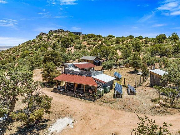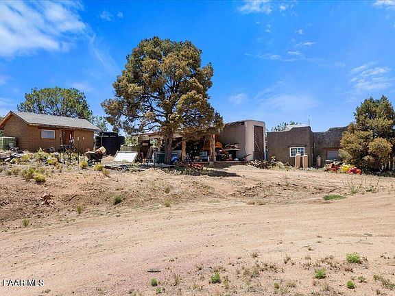 Discover a truly remarkable retreat nestled on nearly 8 acres in the stunning landscapes of Prescott, AZ. This exceptional property offers breathtaking views and unparalleled privacy, making it the perfect sanctuary for those seeking tranquility and natural beauty. Access the property conveniently from either Williamson Valley or North Chino Valley, allowing you to feel completely immersed in nature while still being just 15 minutes away from grocery stores and essential amenities. The well-maintained roads leading to the property ensure easy travel year-round. The home itself was built by the seller--a retired contractor--who personally formed the adobe bricks used in its construction. This off-grid residence not only provides a unique living experience but also eliminates utility bills,