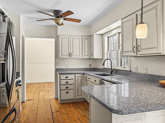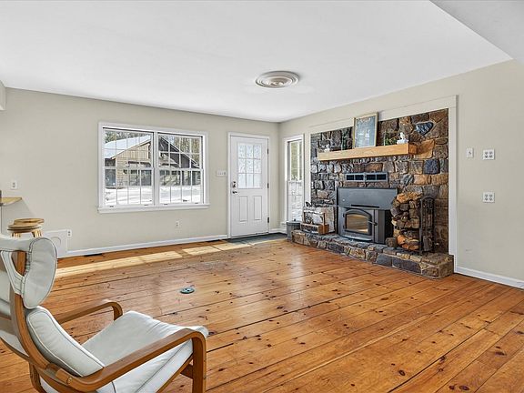 Discerning buyers will appreciate this thoughtfully upgraded, energy efficient home that blends comfort, style, and long term value. The solar energy system is complimented by multiple heating options including a heat pump hot water heater, forced hot air, wood stove insert, for year round efficiency. The kitchen features Silestone countertops and opens to the inviting living room, anchored by a large hearth with a modern wood stove insert. The first floor includes a private primary suite, cozy reading nook, and half bath, while upstairs offers Three spacious bedrooms, a central landing, and a full bath. Elegant touches include the Hubbardton Forge Corona Smoke Chandelier, with matching wall sconce, and the modern floating mantel. The full basement provides laundry, storage, and utility space, ensuring functionality without sacrificing style. Step outside to enjoy a serene setting from the back deck with a hot tub and charming front porch, perfect for relaxing, entertaining, or observing the abundant wildlife. This home offers a rare combination of modern upgrades, inviting interiors, and tranquil outdoor living.