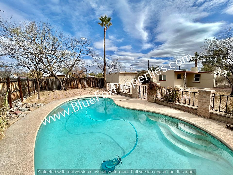 Welcome to this charming 2-bedroom, 1-bathroom home, perfect for comfortable living and entertaining. The spacious kitchen is a standout, offering plenty of cabinet space and sleek stainless steel appliances, ideal for culinary creations. Adjacent to the kitchen, you'll find a cozy dining area. The expansive living room features beautiful laminate flooring, abundant natural light, and a welcoming fireplace, making it an ideal space for both relaxing and hosting guests. Both bedrooms are generously sized, complete with cozy carpeting and closet space. Step outside to discover a large backyard, where you can enjoy a refreshing pool perfect for those warm days and entertaining friends and family. This home is available now for a 1-year lease. The rental rate is $1,450.00 per month, and the security deposit is $1,450.00. There is a $125 tenant administrative fee, per tenant or cosigner. If pets are allowed and approved, there is a monthly pet fee ranging from $25 - $100 per pet, plus a one-time $150 non-refundable pet fee, per pet. The monthly fee is determined by PetScreening dot com. Most homes allow 2 pets unless otherwise stated in the property description. Our residents are automatically enrolled in our Resident Benefit Package. The cost of this program is $35 per month. For more information regarding this program, please go to bluefoxproperties dot com to the For Residents tab on the banner and click on the Resident Benefit Package on the drop-down menu. Every adult age 18 and over must complete an application. The application fee is $55 per adult. The application process includes credit, criminal, previous rental history, employment, and income verification. Residents are required to obtain and keep liability and renter's insurance in full force and effect during the full term of the lease agreement and any subsequent renewals. The coverage must include at minimum the following: $20,000 renter's content coverage $100,000 tenant liability insurance coverage $10,000 renter's bodily injury coverage Our residents may purchase their own policy as long as Landlord and Agent are listed as "additional insured". It is important to note that "additional insured" and "additional interest" are not the same thing. If the policy provider will not name Landlord and Agent as "additional insured", our residents will have to find an alternate provider that will. Our residents must provide a copy of the policy to Blue Fox Properties, LLC prior to lease signing and prior to signing any lease renewal. If the copy is not provided prior to lease signing, Tenant will automatically be enrolled in the insurance policy provided through Blue Fox Properties, LLC and charged accordingly. The cost of the Blue Fox policy is $20. Our minimum rental requirements include the following:1.The applicants' household verifiable gross monthly income must be 3 times the rental rate. 2.All our homes are offered as non-smoking. No smoking is allowed on the premises, inside or outside the home. 3.Reasonable credit which includes but is not limited to an average credit score of 630 for all applicants combined. Credit scores between 580-629 may be eligible to provide a cosigner to support challenged credit. 4.If this property is located within the City of Tucson, housing vouchers will be considered. 5.Applicant to provide proof that debts to previous landlords have been satisfied. An eviction can be grounds for denial. 6.No felonies for the past 10 years related to property damage, illegal substance manufacturing or distribution, or assault. Other criminal activity may be grounds for denial. 7.All pets are subject to approval. 8.No bankruptcies that have not already been discharged. 9. All current or pending collection accounts owed to any utility companies must be paid in full, with no exception, and must provide a receipt from the collection agency or utility company stating the collection fee has been paid or settled. 10. You must fill out an application on bluefoxproperties dot com. Applications submitted through any other site will not be accepted and Blue Fox will not be responsible for any refunds. Blue Fox Properties is an Equal Opportunity Housing provider. We are also licensed REALTORS.