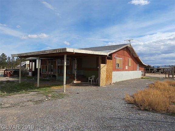 Located on the south side of Pahrump near Lake side Casino. Just over an acre. Fully fenced with 2 double gates. Horse corral, chicken pens. Great mountain views. 3 bedroom plus a 2 bedroom extra living quarters built on the back side. Barn style 2 car garage. Bring your hammer, saws and materials this is a fixer-upper with great potential.