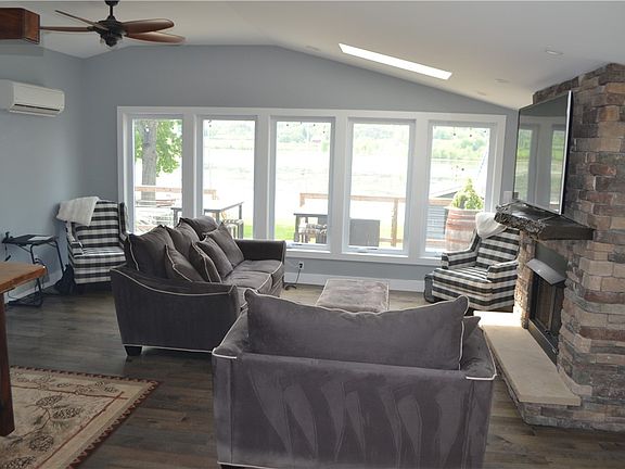 Spectacular lake home that has been transformed from a lake cottage to a absolutely beautiful year round home. Everything has been renovated down to the studs. HUGE Kitchen, open dining area a family room with stone fireplace with views of Lake Waneta. 3 bedrooms including a master suite with full bath and walk-in closet. Huge deck in back overlooking the wonderful back yard and water front. Dock and hoist included for your boating enjoyment. EVERYTHING including ALL furnishings, housewares, appliances can be included for the right price. Gererac generator gives you piece of mind year round.