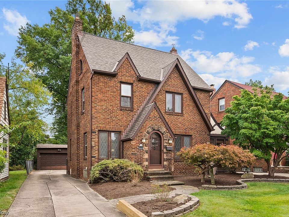 First time for sale since 1991. Welcome to this charming, all brick home, filled with so much character, with central air, enclosed porch, brick paver patio, and oversized garage. Conveniently located near Legacy Village, Downtown Cleveland, universities, hospitals, plenty of other shopping and restaurants, parks, and so much more! This home features hardwood floors throughout, 3 bedrooms, 1.5 baths, an eat-in kitchen w/ breakfast nook and all stainless steel appliances, living room w/ built-ins & fireplace, formal dining room w/ access to the enclosed porch, 2nd-floor balcony overlooking the backyard, partially finished basement, and extra storage in the garage that could be converted into a 3rd usable garage space if needed. Replaced house roof (2012), garage roof (2010), refrigerator (2007), dishwasher (2023), stove & hood (2018), hot water tank (2017), garage door (2020), gutters (2019), sections of driveway (2012), installed landscaping (2023), and hot water tank expansion tank (2