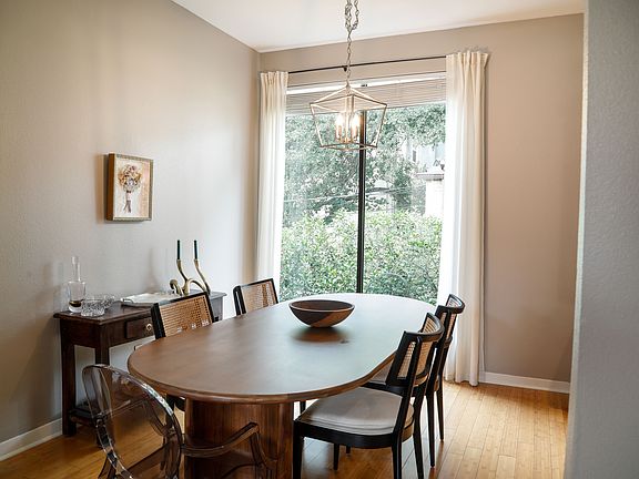 Cool condo nestled in the desirable Oak Lawn neighborhood, situated between Highland Park and Turtle Creek. This nicely maintained, top-floor residence features tall ceilings and large windows with custom window treatments. Generous living room with pretty bamboo floors, anchored by the fireplace & custom mantel. Separate dining area features designer light fixture & floor-to-ceiling window overlooks treetops below. Gourmet kitchen with custom cabinetry, granite countertops, & stainless steel appliances. Separate utility closet with stackable washer & dryer, and built-in storage. Large primary suite features two separate closets with custom Elfa organization system. Spa-like bathroom with dual sink vanity, custom light fixtures, and skylight overhead. Nicely maintained eight-unit community with secured gated access. Ample storage throughout. Includes: washer, dryer, refrigerator, Nest Thermostat, & (1) reserved rear covered parking space (Space G). Walk to Whole Foods & nearby restaurants. Close to Equinox Gym, One Lagree, & Training Mate fitness studio. Easy access to Uptown, Downtown, Tollway & 75 freeway. Less than 15-minutes from Love Field Airport and JSX Private Airport. Monthly water, sewer, trash included.