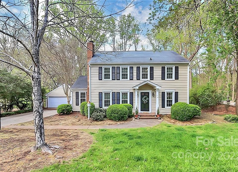 Traditional home with lots of curb appeal in great neighborhood off Carmel Rd. Low maintenance vinyl siding w/vinyl windows. Updated kitchen with Energy Star Stainless appliances, granite & recessed lighting, breakfast bar, large pantry and access to large private deck. Family Room w/gas log fireplace and additional Living Room. Office/Drop Zone off kitchen. 4 bedrooms on second level. Deck overlooks private treed yard with walking bridge to additional wooded area. Large detached 2 car garage with storage and workbench. Great location. Rockbridge is .5 miles from Olde Towne Village with Starbucks, Harris Teeter, Hawthorne Pizza, CVS and dry cleaners. Convenient to Southpark, Uptown, Ballantyne, Stonecrest, theatres, restaurants and airport.