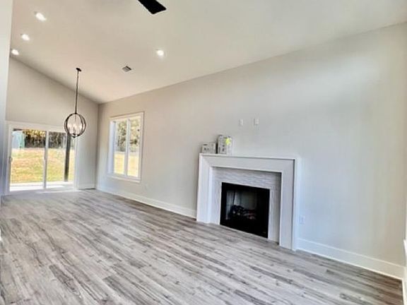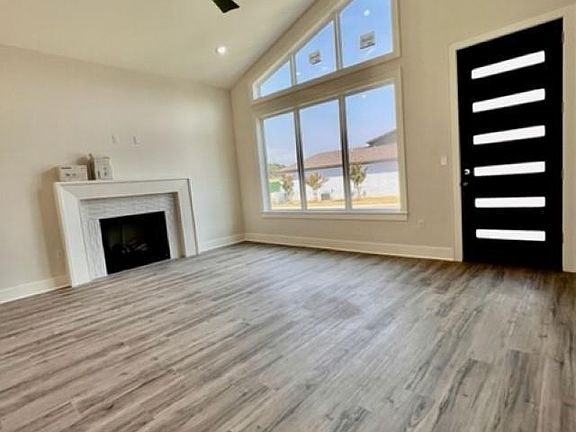 Modern design. Low maintenance patio home offers 2 beds, 2 baths and a covered patio with extended grilling pad. 1340 sq ft of heated and cooled living space with an oversized garage which offers lots of storage space above. The attic has been spray foamed for energy efficiency. The vaulted ceiling in the living room are accentuated with lots of windows giving tons of natural lighting. The fireplace and ceiling fans are controlled by remotes. The 8'majestic interior and exterior doors are highlights