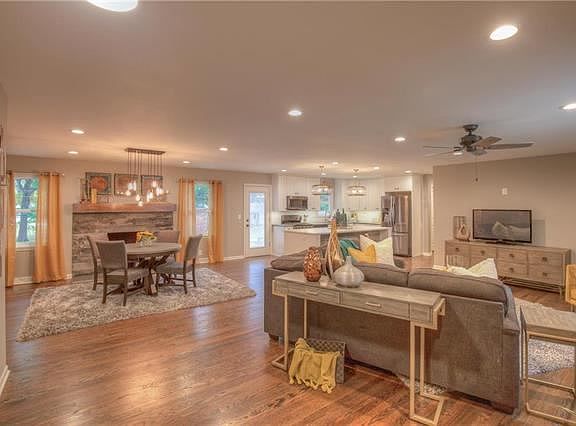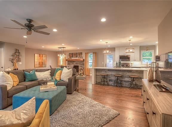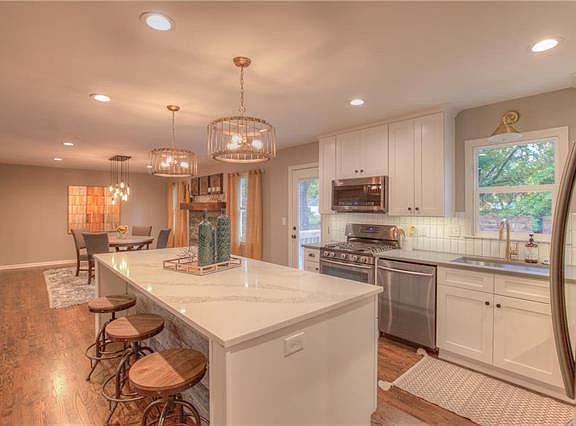 Don't miss this Sophisticated Complete Remodel w/open concept & modern flare throughout.Custom Kitchen w/quartz counter-tops & center island open to great room & elegant formal dining room.New plumbing, electric,windows,refinished hardwoods throughout.Gutted & redesigned bathrooms,new patio,new driveway &sidewalk,new garage doors.Staircase relocated-complete open concept.Finished basement w/ 4th bedroom,amazing bathroom & rec area.Walk in pantry-Laundry on main level!DRY BASEMENT!!New landscaping & fenced yard.
