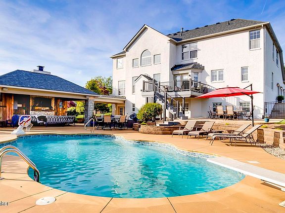 FIRST SHOWINGS AT OPEN HOUSE THURS 4/25, 4-6 PM, photos coming soon: Feel like you're on vacation every day with your own luxurious backyard pool and entertainment area with gorgeous hillside views overlooking a lake. This 5 bedroom home is tucked away on a large lot in prestigious Whiteblossom Estates. It features a beautiful, sculpted self-cleaning pool with a waterfall, and an open pool house with stone fireplace, TV, serving area, covered seating area and storage room. The entire backyard has a surround sound system to keep the resort vibe going. You'll love the combination 20' lap pool/spa with colored lighting and full bluetooth speaker system. Use one side to exercise, or use it the full unit as a giant hot tub while entertaining. This back yard is truly one of a kind. You can take the party inside, as well, to the walk-out basement with a full family room, game room and bar with a sink, dishwasher and microwave, stone fireplace, bedroom and full bath. This amazing home is ideally located off Hurstbourne Boulevard in Springhurst, and is steps from the Paddock Shops, Kroger and KCD with easy access to I-265. Don't sleep on this one! Make your showing appointment today to be sipping your margarita poolside this summer.