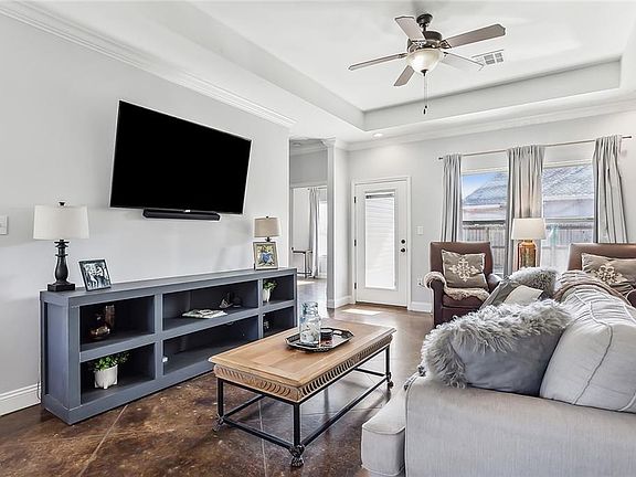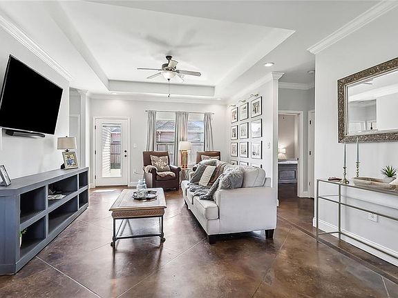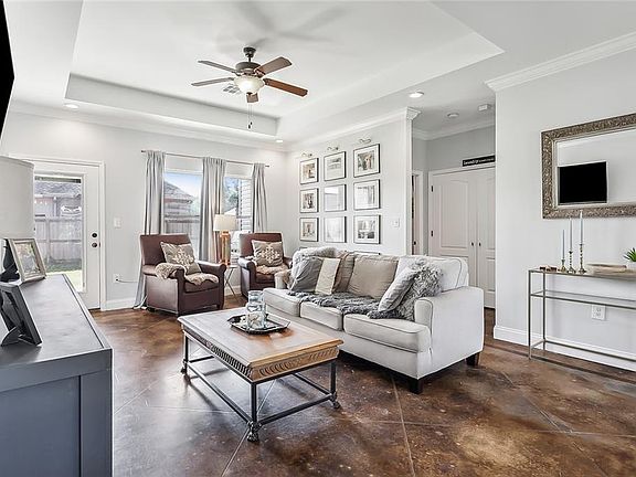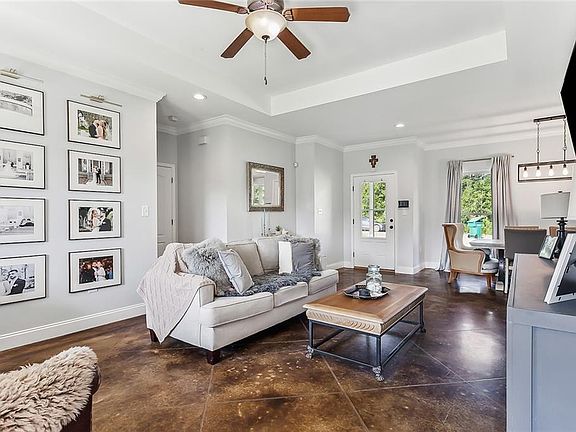Gorgeous 3bd/2bth Ponchatoula Charmer with easy access to I-12 & I-55! Fabulous open floor plan living with stunning stained/scored concrete floors throughout. Large living room with trey ceiling and second seating area opens to dining room and kitchen. Upgraded kitchen cabinetry with granite counters and pantry for ample storage. Primary suite with trey ceiling and refreshed ensuite. Large guest bedrooms and refreshed guest bath. Covered back patio and fully fenced yard. Flood zone X. Extended concrete driveway with carport perfect for entertaining. Home qualifies for 100% financing! A MUST SEE! Make it yours today!