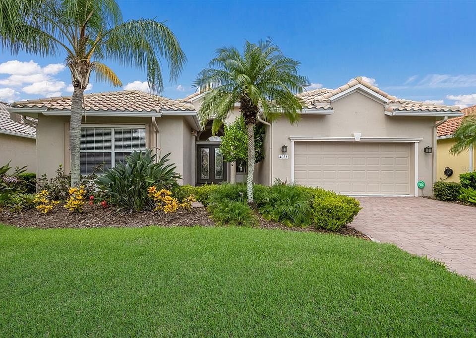 RARE DUAL MASTER GEM in Cascades at Sarasota! 2 OR 3 Bed | 3 Bath | Custom Upgrades! Discover one of the most unique and desirable floorplans in the coveted Cascades at Sarasota—a true 3-bathroom home offering exceptional flexibility and sophisticated design throughout. Two spacious Master Suites—each with private en-suite baths and walk-in closets outfitted with custom organizers—make this home ideal for multi-generational living, guests, or simply enjoying privacy and comfort. The third bedroom is currently configured as a professional-grade home office, featuring custom built-in desk cabinetry and double-door entry. A full guest bath is conveniently located nearby. Approaching the entrance, you’re welcomed by a grand covered entry with high architectural pillars and exquisite leaded glass double doors, opening into a dramatic pillared foyer that sets the tone for the elegance within. The open-concept Great Room and Dining Room are crowned with stunning 12-foot tray ceilings and adjustable recessed lighting, offering a sense of volume and ambiance. The Primary Master Bedroom also features a 12-foot tray ceiling, continuing the upscale architectural design. A full wall of 8-foot sliding glass doors seamlessly blends indoor and outdoor living, inviting natural light and offering effortless access to the expansive screened lanai—which is partially roof-covered, providing comfortable, dry seating and lounging year-round. The chef’s kitchen is both functional and stylish, boasting 42” cabinets, solid-surface countertops, a spacious pantry, and a long breakfast bar—perfect for entertaining or casual dining in the adjacent bay-window breakfast room. Located within the gated, resort-style 55+ community of Cascades at Sarasota, residents enjoy a wealth of amenities including indoor and outdoor pools, tennis and pickleball, a modern fitness center, clubhouse activities, and scenic walking paths. Homes with this thoughtful layout and upscale features are rarely available. Schedule your private tour today and experience the best of Florida living! And…for peace of mind…Accordion Hurricane shutters fitted on all windows and doors.