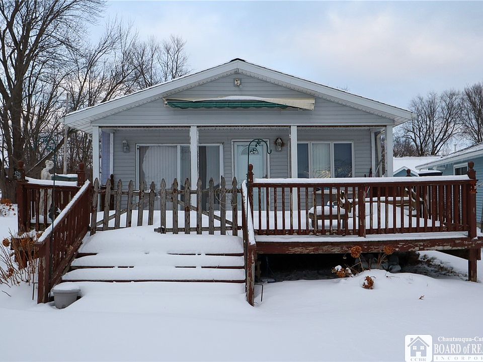 Darling Chautauqua Lake cottage offering 35 feet of lake frontage and beautiful water views. Enjoy lake living from the spacious deck overlooking the water—perfect for morning coffee or sunset evenings. Inside, an open floor plan creates an easy, relaxed flow ideal for entertaining or weekend getaways. Detached garage provides convenient storage for vehicles and lake toys. A charming retreat with direct lake access, outdoor living, and all the essentials for enjoying Chautauqua Lake.