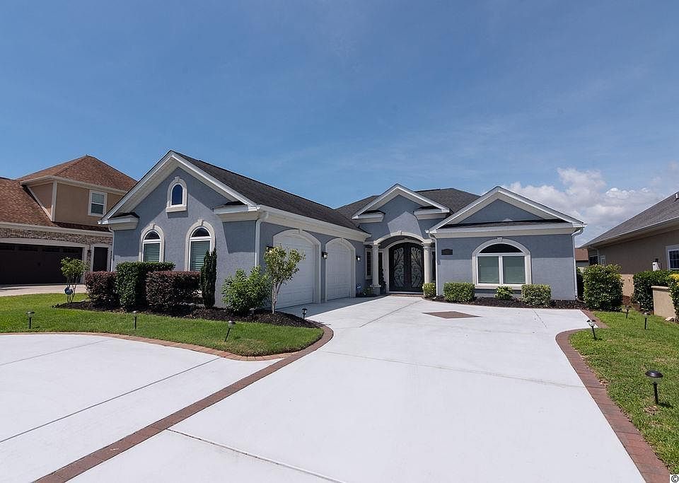 BEST PRICED HOME IN THE BLUFFS ON THE WATERWAY COMMUNITY!! Considering a move to the coastal southern shores of Myrtle Beach, SC? Do you desire a well-built home in one of the most desirable coastal communities? This is the home you’ll love to buy! This custom-built Mediterranean style home delivers subtle elegance in so many ways - you’ll simply need to see it to believe. The floor plan is ideal for the homeowner who prefers ample space to entertain with style as the common area and gourmet kitchen spaces boast 12ft ceiling height, oversized windows and 8ft interior doors - even the extra wide front entrance door is a site to see! As you walk throughout the home, you’ll quickly notice how these oversized spaces are positively influenced by the amount of natural sunlight – it’s a delight. Even the bedrooms provide extra square feet as well as taller ceiling height. From the upgraded and oversized kitchen design, expensive light fixtures and hardwood flooring throughout most of the home, you’ll understand why it’s perfect for you! In addition, should you find value in a well thought out floor plan design with first floor living (no stairs) coupled with the convenience of an oversized driveway & plenty of space in the back yard to add you own pool, this home is certainly a prized gem – it even has direct views of the water feature and water fountain! In addition to the perfect home, The Bluffs on the Waterway gated community is a prestigious staple in the Carolina Forest area. It gives you access to quality lifestyle benefits, to name a few: two clubhouses, pools, tennis & basketball courts, sidewalks, mature landscaping, direct private access to the Intracoastal Waterway and a private boat storage area. Beyond that, you’re only a few minutes away from the beach, grocery, shopping, spa & fitness, golf, bike riding, shooting range, restaurants, healthcare, top-tier schools, international airport and much more - you'll love it! Even Mister Softee ice cream truck visits weekly – it’s delicious! Don’t delay, contact us today to schedule your private showing.