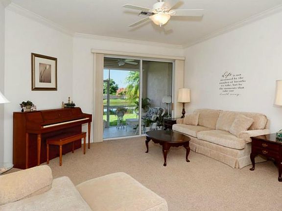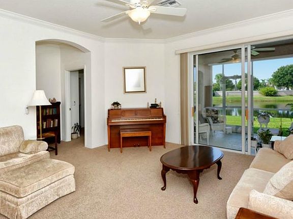 Welcome to Lakeridge Falls, a 55+ community. Pride of ownership shows in this 2 bedrooms plus den, 2 bath ground floor villa with attached 2 car garage. This villa has been meticulously maintained and it shows! Owner originally upgraded this villa with gorgeous cherry cabinetry in your kitchen w/ corner cabinets for extra storage and cherry cabinets in both baths. Upgraded lot originally chosen specifically for its privacy on a lake but with no houses behind you. Added cabinets in the laundry room, upgraded tile and crown molding. New A/C w/ added light to eliminate mold done in 2012. New microwave in 2013, speakers out on the lanai and added pull down sun shade as well on lanai. Large clubhouse w/ Olympic size pool and heated spa, exercise room, billiard room and bocce ball court along with 24 hour security gate.