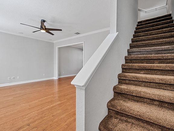 SouthWood townhome!! Within walking distance to SouthWood amenities! This well maintained 2 bedroom, 2.5 bath home offers wood floors, crown molding, spacious open living space with lots of natural light, two-car garage, and beautifully landscaped courtyard! Brand new AC unit! Water heater replaced in 2018 and microwave replaced in 2019. Sizable upstairs bedrooms each have their own en-suite bathrooms. The courtyard is beautifully landscaped and offers plenty of privacy with the privacy fenced yard. This townhome is a must see!
