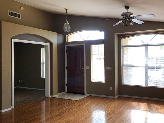Beautiful single story, 3 bed + den, 2 bath, Mountain Park Ranch Home in Ahwatukee. Next door to A+ Esperanza Elementary school. Less than two miles to I-10 and 202 entries to get to any directions. Close to stores, resturanses, community pool/tennis court, walkways and parks. Gorgeous updated eat-in kitchen with granite countertops and tile floors. Beautiful hardwood floors in living and family rooms, laminate wood floors throughout the bedrooms. Grand vaulted ceilings. Ceiling fans in all rooms. Nicely landscaped backyard with mountain views. Home has a 2 1/2 car garage. Large corner lot provides good distance from other houses. Owner pays for HOA fee. Renter is responsible for water, gas, electricity, pest control and landscaping services. No smoking allowed. Prefer renter with 700+ credit score.