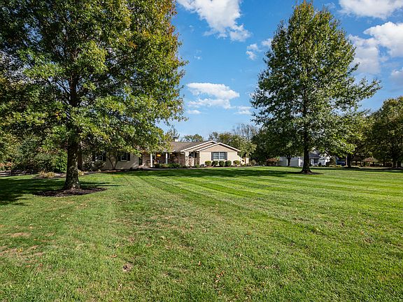 Absolutely stunning ranch on idyllic 1.99 acres in Boone County! This meticulously maintained custom home boasts detailed woodwork, a mudroom, built-ins, two stone fireplaces, a screened-in patio, a finished basement, and more. The amazing primary suite includes a walkout to the deck, overlooking your private backyard. The en-suite bathroom features custom storage, heated floors, a soaking tub, and a large shower. The home offers three spacious bedrooms, first-floor laundry (with two laundry rooms!), a huge family room, and stunning hardwood floors. Additional highlights include a large two-car detached garage, an irrigation system, an air purifier, a fenced yard, an extensive security system and a shed with electric and water. Enjoy the fire pit area with ambient lighting that overlooks a neighboring farm. The finished walkout basement features a bar, a full bathroom, a second laundry room, and a huge workshop area.