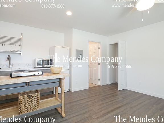 This clean and updated studio with private deck and views of the hills was just fully remodeled in 2023. The home features beautiful quartz countertops, shiny fixtures and appliances, custom wood island, luxury plank flooring, and spa like bathroom. It comes with all the appliances to cook like a microwave, electric stove, and multi function air fryer toaster oven. In addition, there is a mini split for your AC and heating, a ceiling fan with light, and not to mention your own private deck with views of the hills- perfect for a bistro table and chairs! RENTAL DETAILS Lease Duration: 12 months Utilities Included: Exterior Landscape Tenant Pays: Water/Sewer, Trash Pickup, SDGE and Shared Internet Parking: (1) Assigned Parking Space Laundry: On-site Shared Laundry (Coins) Pet Policy: No Pets Please Mail: This unit does not have a mailbox. Resident will need a PO box to receive mail. SHOWINGS " Select "Schedule a Showing" under the property you are interested in and follow the prompts. APPLICATIONS Do NOT apply if you have not toured the rental home in person. You must view the inside of the rental home PRIOR to applying. We require you to tour before submitting an application or your application is considered incomplete. Application fees are non-refundable under any and all circumstances. QUALIFICATIONS The rental decision is based on these four combined factors: 1. Good Credit History (700+ Credit Score Required) 2. Positive Rental References 3. Gross Monthly Income (at least 2.5 times the monthly rent) 4. Your Lease Start Date (Move-In Ready, typically looking to start leases the same week or next week.) **Guarantors are NOT allowed for this property.** If you submit a Guarantor Application, the application fee will NOT be refunded. SCAM ALERT! The Mendes Company does NOT advertise rental homes or apartments on Craigslist or Facebook. Our "landlords" will NEVER schedule showing appointments for you or ask for payment via Zelle or Venmo. Showings may only be scheduled on The Mendes Company website and no other way. FAIR HOUSING COMPLIANCE The Mendes Company complies with all federal, state. and local fair housing laws and welcomes persons of all race, color, religion, nationality, sex, familial status, disability, sexual orientation, and gender identity. Exterior Landscape On Site Shared Laundry One Assigned Parking Space