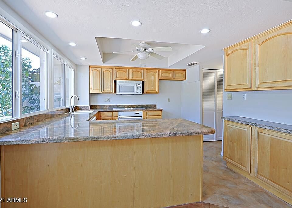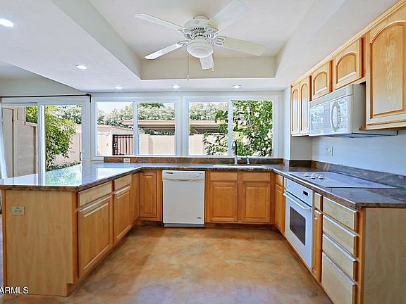 This is a great townhome in a superb location.There are dual pane windows throughout, and the interior has just been freshly painted.The kitchen includes gorgeous granite countertops,updated cabinets,and plenty of cabinet space. Both bedrooms are huge suites with large ,bathrooms,and even vanity space in one and both include large walk in closets.The townhouse has had many updates over the years,it is perfect to live in as is or make it your own!The patio is tiled and large enough to make a great entertaining space! Concrete floors are downstairs and there is newer laminate floors upstairs. There are ceiling fans throughout as well. The community is meticulously kept, and the south Scottsdale location is hard to beat. it is close to hip nightlife,world class shopping & dining!See it today!