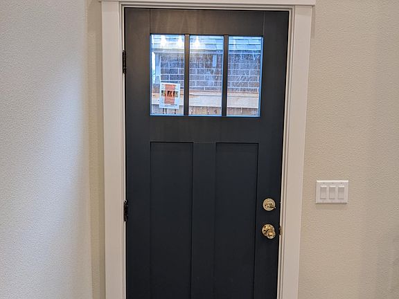 The ADU is bright and open, with high ceilings and large windows through the combined living/kitchen space. It features radiant floor heating, ductless AC cooling, and high-end appliances (gas stove, 36" fridge, DW, W/D).