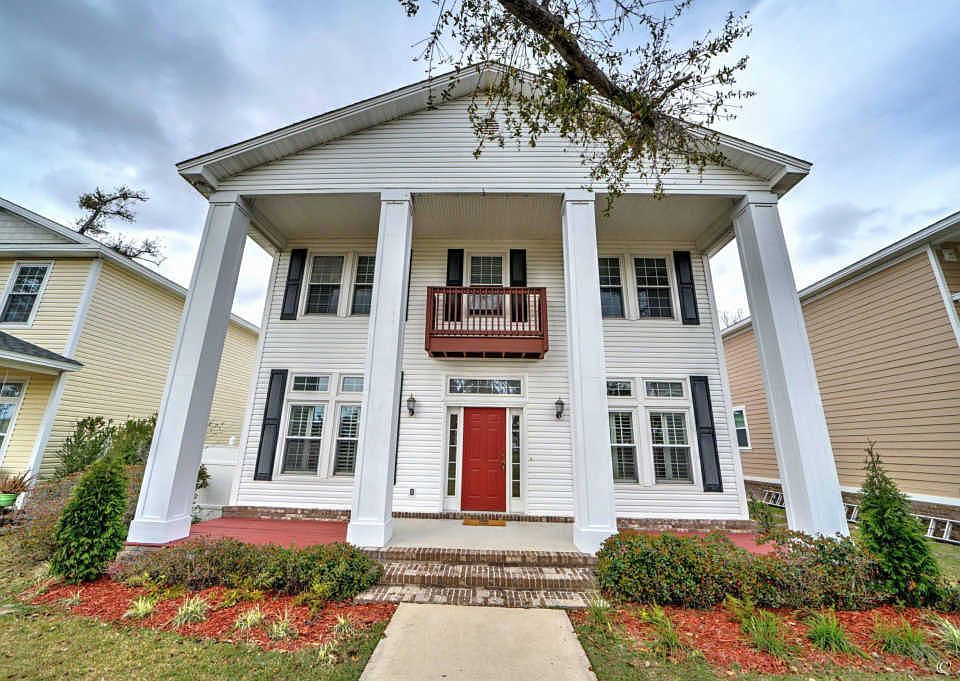 Charming 3 bed 2.5 bath in Riverside Park. The dramatic porch with large columns overlooks the courtyard and mile long sidewalks. The welcoming foyer leads to multiple living areas. There is a formal dining room with an entrance to the kitchen and a separate sitting room that could also be used as an office. The eat-in kitchen opens up to a den with a wood burning fireplace. The kitchen is equipped with stainless appliances, breakfast bar, and pantry. All bedrooms are housed upstairs with a 1/2 guest bath downstairs. The master suite is embellished with a huge tray ceiling, recessed lighting, carpet in the bedroom, and tile in the bathroom. The master bath has a soaking tub, separate shower, private toilet, double vanity and a large walk-in closet.