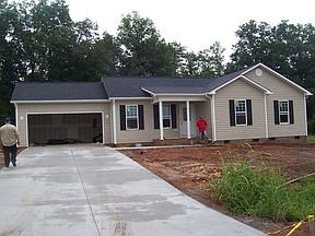 Flying V Acres #12- 1208 Htd Sq Ft 3BR, 2Ba, Vinyl Ranch Home w/ attached 2 Car Garage outside City Limits of Maiden. Open Great Room, DR and Kitchen. Level Lot has .60 of an Acre. $131,900.