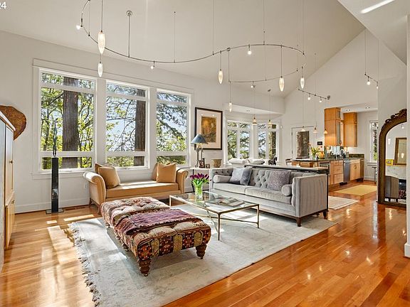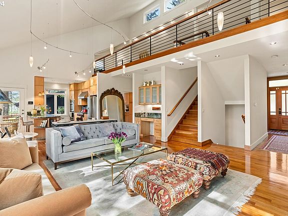 Nestled on a scenic, winding road in Portland's SW Hills, this exceptional 2007 custom built home captures the essence of Pacific Northwest living. Walk into vaulted ceilings and a light filled great room, framing a picturesque tree-lined valley beyond expansive windows and you will be instantly hooked. The well designed layout consists of 1,617 square feet on the main floor which includes the primary suite in addition to the great room with a wonderful kitchen enhanced by a high end stainless appliance package, charming dining room that is equally suited as a quaint library, and a well-appointed laundry room right off the two car garage. Imagine unwinding in a cozy nook with a novel, the tranquil vistas providing a perfect backdrop.Each of the three en-suite bedrooms enjoys access to private decks, offering intimate encounters with the surrounding nature. Mornings here are filled with the sight of playful wildlife and evenings are capped with stunning sunsets. The upper level introduces a spacious loft, adaptable for entertainment or work, complete with a full guest bathroom.Situated on a street that doubles as a well known scenic running path, where Olympians workout, this home offers direct access to numerous trailheads of the Marquam and Forest Park trail system. Located in a peaceful neighborhood, 4032 SW Hewett Blvd ensures a blend of tranquility and community. Its proximity to OHSU and the urban core's vibrant scene highlights the best of Portland's lifestyle! [Home Energy Score = 3. HES Report at https://rpt.greenbuildingregistry.com/hes/OR10051249]