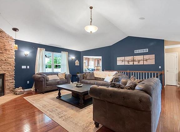 Summer is coming! Be the envy of your friends when you buy this home! Awesome outdoor space with heated in-ground swimming pool. New Roof will be on soon! Relax under the ceiling fan on the covered outdoor porch or belly up to the tiki bar. This area is enclosed with a vinyl fence for added privacy. You'll love the outside but the interior is just as pleasing. As you enter the home you are greeted by beautiful hardwood floors that flow throughout main level, except for bathrooms, that are tiled. Large family room with gorgeous stone fireplace and vaulted ceilings. Kitchen features granite counter tops w/ tile backsplash, stainless appliances (new in 2015) & an abundance of staggered solid wood cabinetry plus pantry. 3 bedrooms and 2 full baths complete the main level. Venture downstairs to find a family room, recreation area & another full bath (new '15). It will be getting a new roof and gutters. Lawn treatment covered for the season. This home has so much to offer so don't delay!