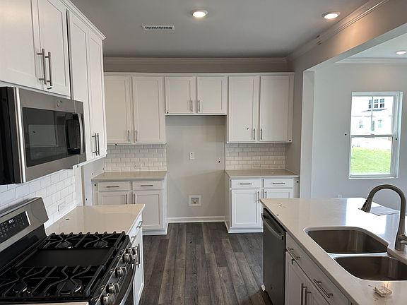 Rare Move-in ready opportunity in Milburnie Ridge. New 3 bedroom home. 2 car garage. Screen Porch. Landscaped yard. 42" white kitchen cabinets, 5 burner gas range, microwave vented to outside, dishwasher, quartz kitchen countertops. Center kitchen island. Tile kitchen Backsplash. EVP floors throughout first floor. Gas log fireplace in Family Room. Walk-in pantry. 7 windows in open living space downstairs. Upstairs Loft. Owner's Suite with walk-in owner's bath shower with seat. Laundry Room includes utility sink.