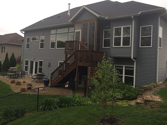 This stunning craftsman home boasts a captivating view of a forest preserve and beautifully landscaped property. Built in 2008, enjoy an open concept layout with 4 bedrooms and 3 full baths. The walkout lower level is an entertainer's delight with a living area, rec area and wet bar with seating for eight. Pool table also included. 10' ceilings on main level and 9' ceilings on lower level pair well with oversized windows creating a light and airy space. This spacious living continues into the luxurious master suite which includes an oversized soaking tub, tiled walk-in shower with body sprays, and huge walk in closet. Gourmet kitchen includes: stainless steel appliances, granite counters, gas range, slide out cupboards, and knotty alder cabinetry. The architectural details of this home add character with its, solid birch flooring, crown molding, built in cabinets, and window seat storage. Enjoy this heated 3 stall garage year round with hot and cold running water, workshop space and loft storage. Convenient garage entry provides easy access to locker area and computer nook. This Energy Star efficient home includes: 2 gas fire places, multi-zone heating and cooling system, central vac, and stainless steel mesh gutter guards.