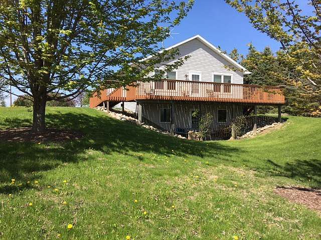 FANTASTIC!!! location with this nice home in a secluded country setting just minutes from town. Close to school, the golf course and the hospital. This 3 bedroom, 2 bath home has an office in the basement that could be a 4th bedroom. Features appliances, oak cabinets, large counter/bar area, tiled flooring in the kitchen and bathrooms, a handicap ramp to the deck for easy access, deck (10X35), cultured rock on the house and garage, beautiful landscaping with spruce, maple trees, birch trees and shrubs, apple & cherry trees. Has a 24x36 Pole Barn for all your needs for storage and extra vehicles. Heat,electric and cement in the barn. Generator Ready hook up in the garage.