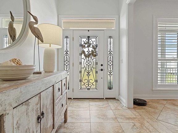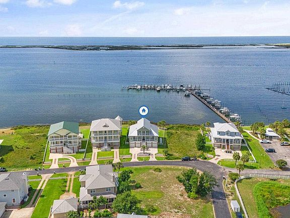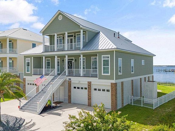 This 3652-sf luxurious coastal retreat is in the desirable cottage district of Landfall, a maritime community! You’ll enjoy stunning sunrises & sunsets over Big Lagoon & the Gulf of Mexico with views that’ll never change because of the protected pristine National Seashore. Follow the inviting grand front stairs up to the open floor plans, all with sweeping water views designed for entertaining year-round. Relax in the tranquil backyard with its heated gunite saltwater pool w/spa & its rare private beach, from which you’ll kayak, paddleboard & fish the seagrass beds & far beyond. The home’s main floor features a formal dining room, waterfront breakfast nook, chef's kitchen w/double ovens, wet bar, large family room w/gas fireplace, prep kitchen/pantry & laundry room, a large primary suite w/full bath, 2nd bedroom with an ensuite bath & a screened porch overlooking the backyard oasis. On the upper floor, you'll enjoy a 2nd primary suite with its own private bath–air-jetted soaking tub, separate 2-head shower, dual vanities–plus another balcony boasting incredible panoramic water views. The 4th bedroom is a true flex room w/private front balcony, custom-built cabinets, bookshelves & a mini-kitchen; it can be an in-law suite, office, or media room. A full-size elevator conveniently centrally-located accesses all floors. Ground-level features include a 6-car garage, extra storage, full bath & poolside tiki bar. The home has a new standing-seam metal roof, 4 y/o commercial-grade 27KW whole-home generator, impact-rated doors, windows & storm shutters, 6 y/o dual tankless water heaters & HVACs, whole-home Sonos sound system, whole-home vacuum & Trex decking. Landfall is a private community w/its marina (slips available) the closest to Pensacola Pass. This is Paradise perfected!